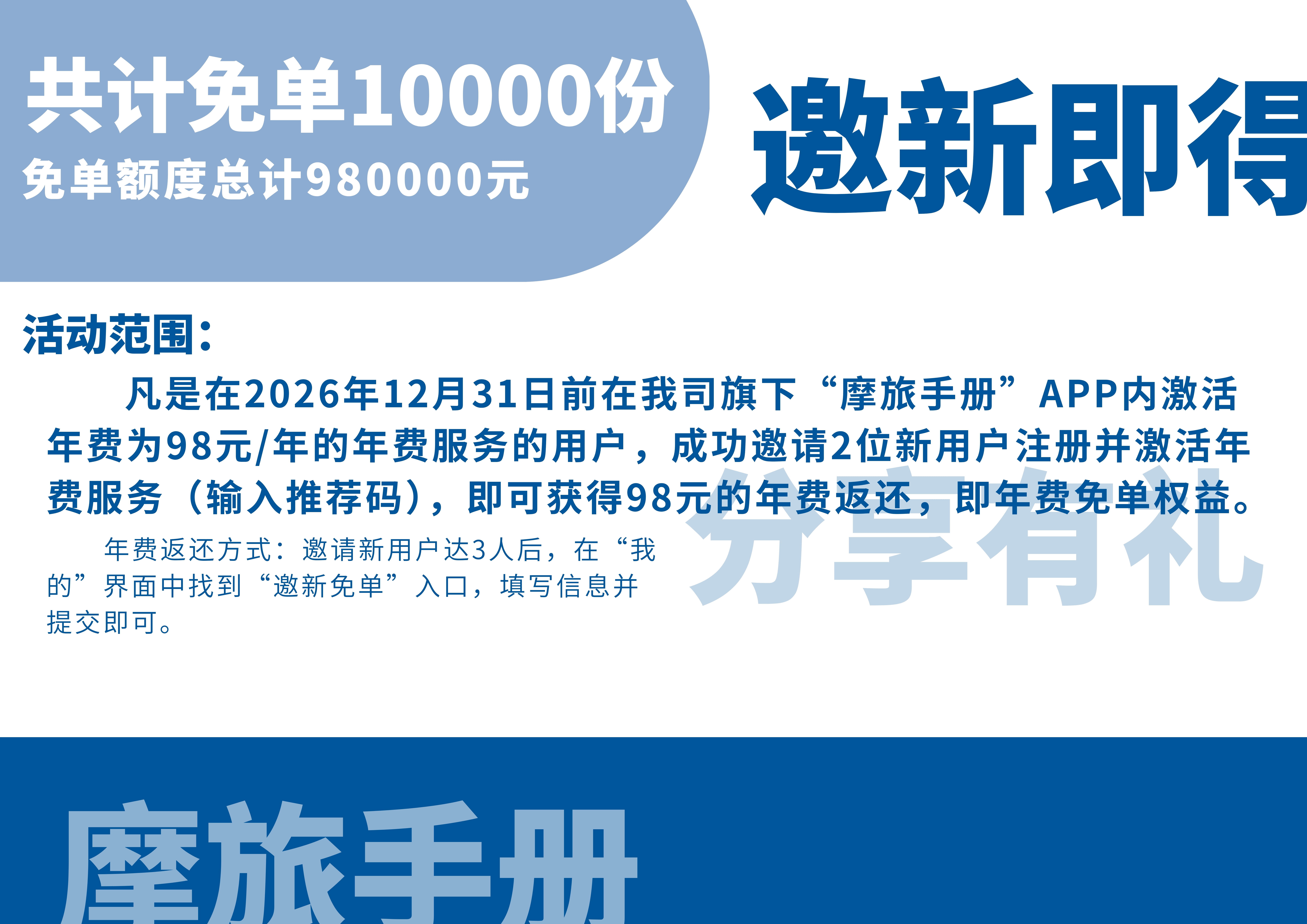 1. 活动对象: 摩旅手册 App 所有注册用户。